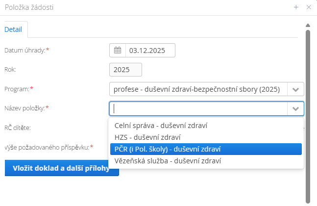 Příjem žádostí o může být ukončen dříve z důvodu vyčerpání financí na danou položku.