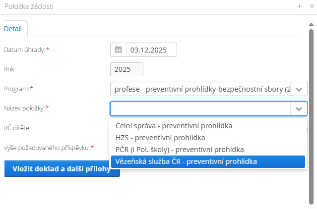 - příslušníci uvedených složek nemusí v tomto programu dokládat absolvování preventivní prohlídky u praktického lékaře