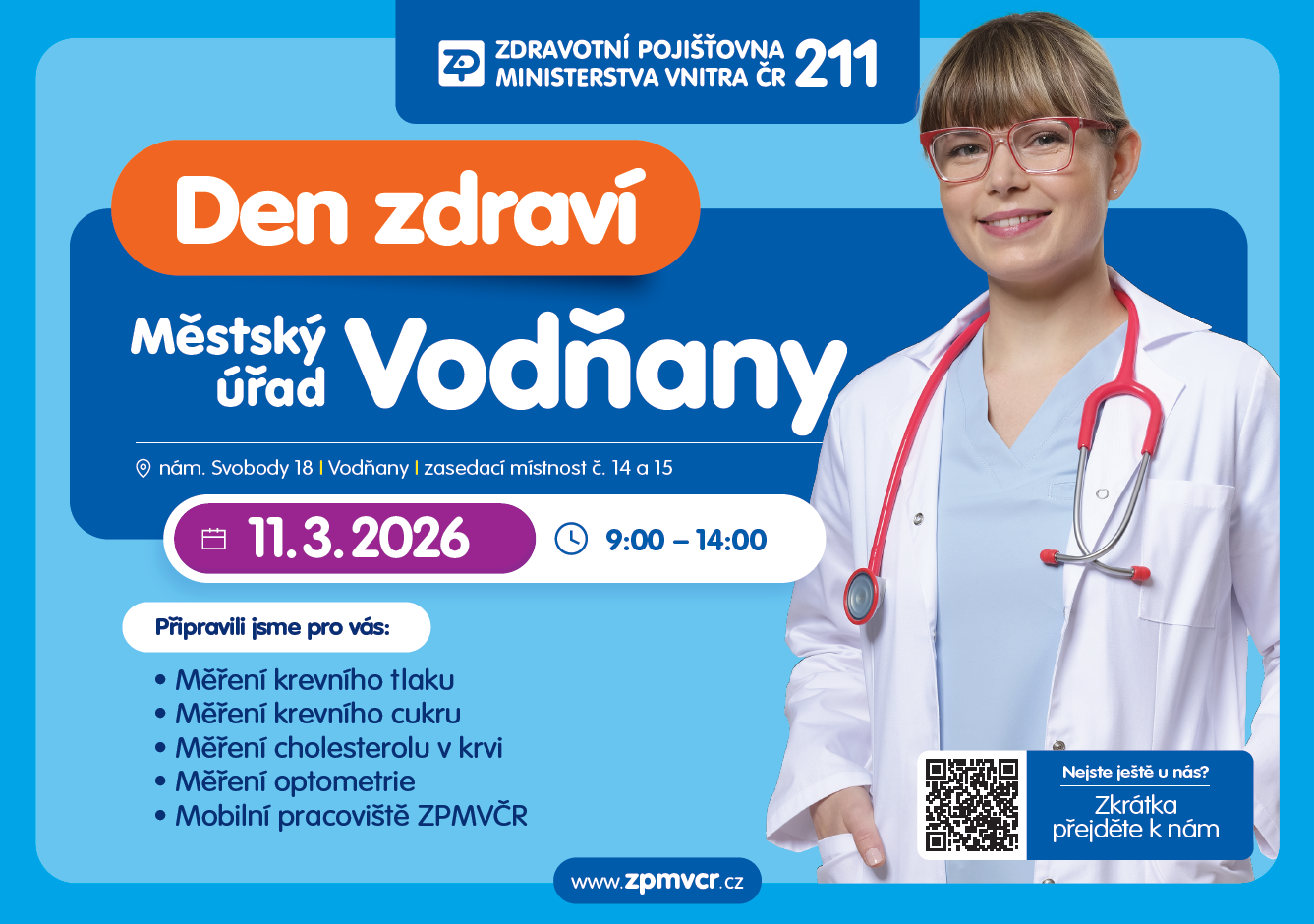 Vážení klienti, využijte naše mobilní pracoviště v Městském úřadě ve Vodňanech. Každé 3. úterý v měsíci. Těšíme se na Vás. Vaše ZP211.