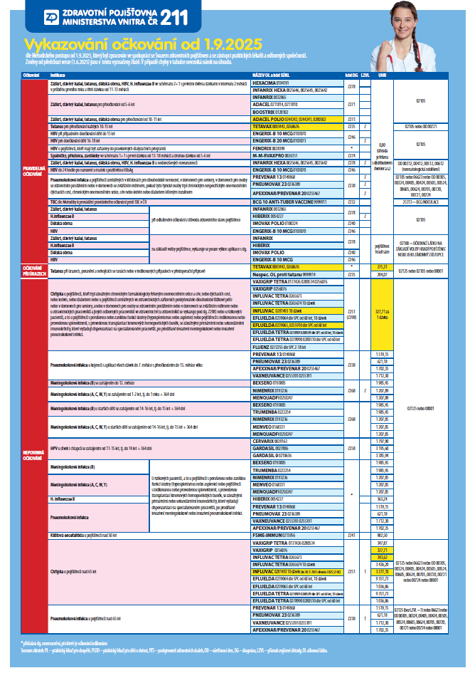 Tabulka k metodickému postupu vykazování očkování od 1. 9. 2025